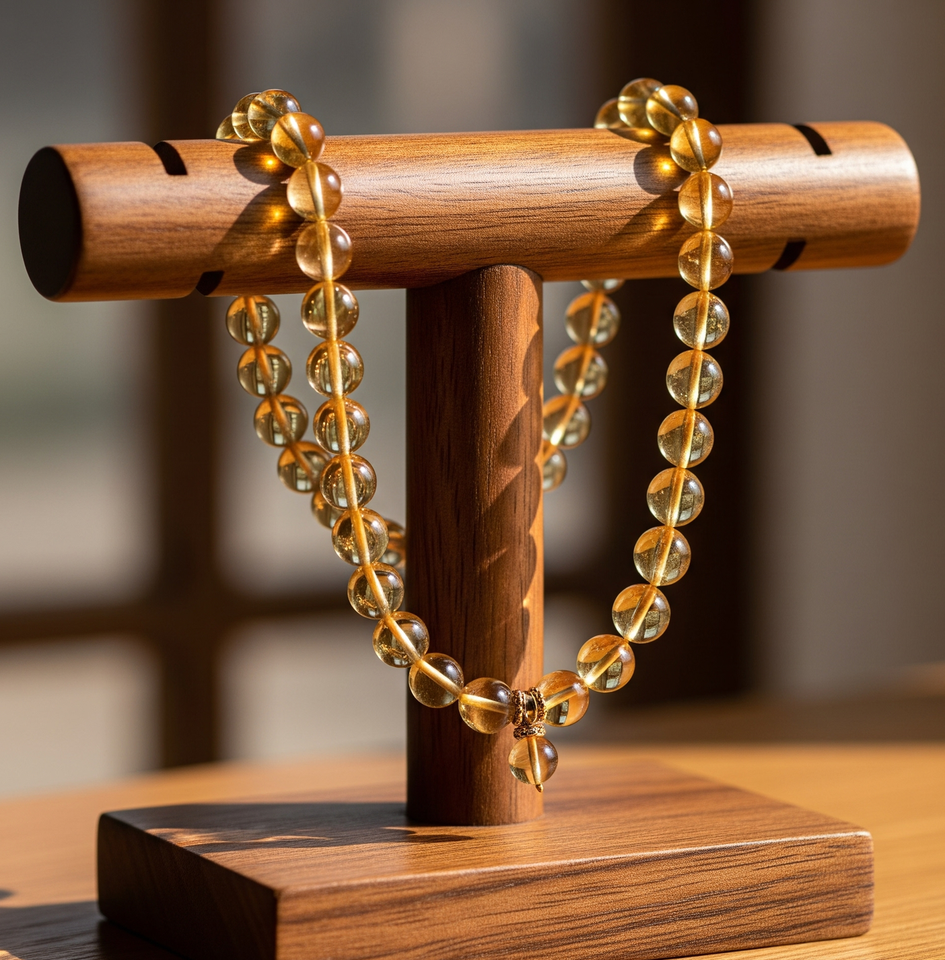 Natural Citrine Stone Beaded Necklace for Women 18-Inch Silver 925 Lock Hand Knotted Geometric Design Trendy Fashion Accessory