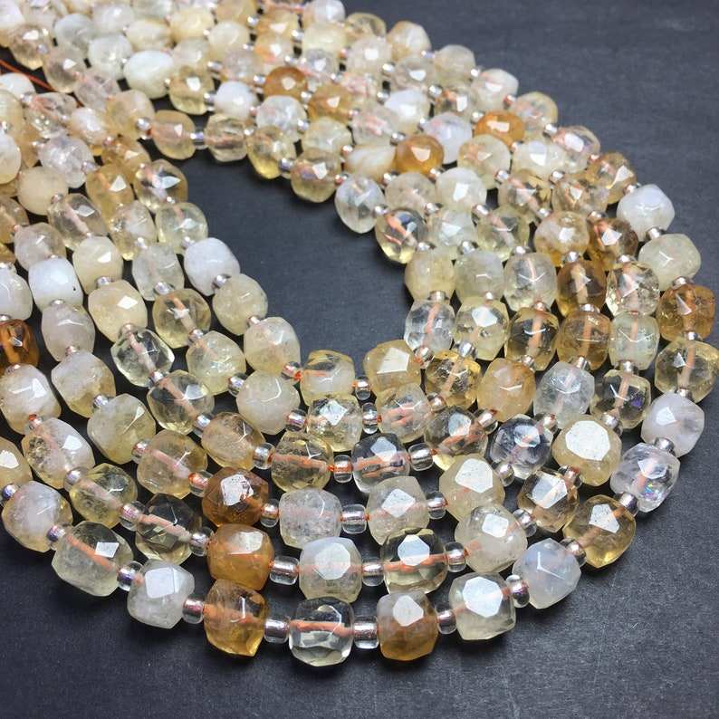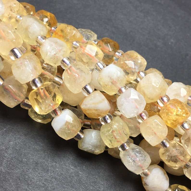 ลูกปัดหินซิทรีนธรรมชาติทรงลูกบาศก์อัญมณีหลวม8มม. 10มม. ลูกปัดคริสตัลรักษาแฟนซีสำหรับทำและออกแบบเครื่องประดับ
