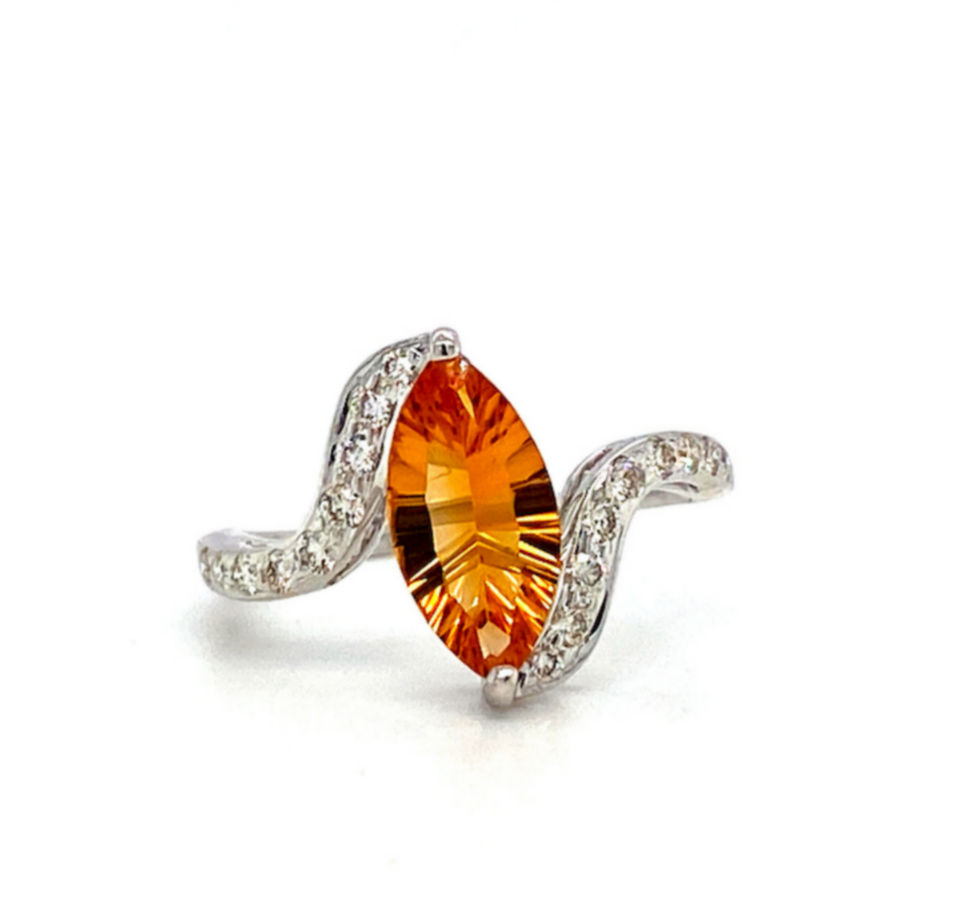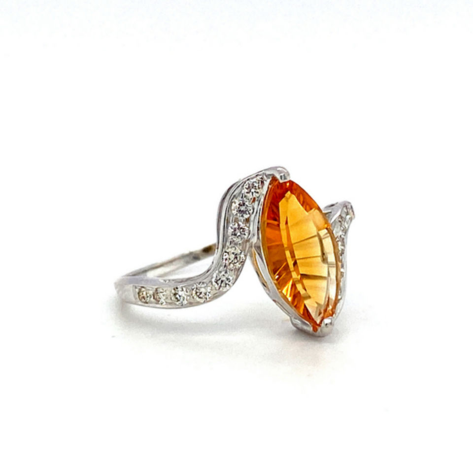 แหวนหมั้นทองคำขาว18K ปรับแต่งได้พร้อมเพชรซิทรีนธรรมชาติเครื่องประดับโรเดียมสำหรับงานแต่งงาน