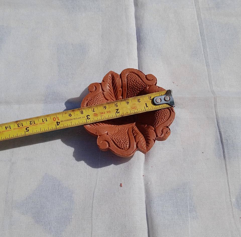 ดินเหนียวธรรมชาติทำด้วยมือสีแดงดิน Diwali Diyas โคมไฟน้ำมันสำหรับเทศกาล Diwali และพิธีกรรมในการออกแบบดอกไม้