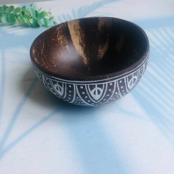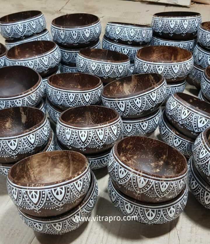 ชามมะพร้าวธรรมชาติ100% เก็บสลัดผลไม้แกะสลักโลโก้ลวดลายดอกไม้ทำโดย vitrapro