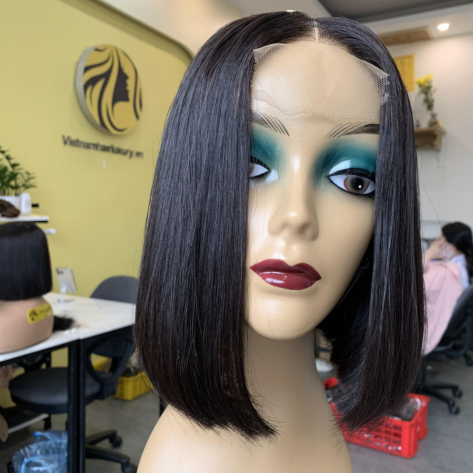 วิกผมตรงกระดูกบ๊อบตัด100% สีธรรมชาติทำจากผ้าทอแบบเส้นเดียวผมชาวเวียดนาม