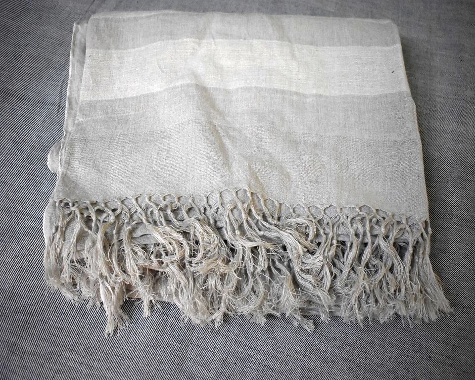 สีธรรมชาติผ้าลินิน100% แผ่นเรียบวินเทจดียมทะเลหนึ่งข้างประดับพู่60x90สำหรับบ้านโรงแรมทอดีไซน์แข็งแรง