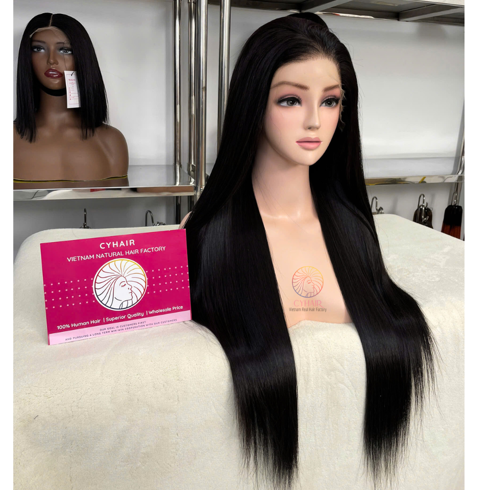 วิกผม360ลูกไม้แบบเต็ม HD สีธรรมชาติผมแท้แบบใสด้านหน้าผมตรงทรงกระดูกเวียดนามสีดำ