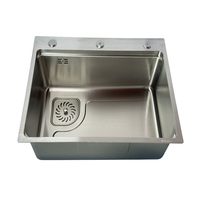 โมเดลทำด้วยไฟฟ้าทำจากสเตนเลส SUS304อ่างล้างหน้าเดี่ยวขนาดใหญ่5รูสีธรรมชาติดีไซน์งานฝีมือ6045 leimanxi