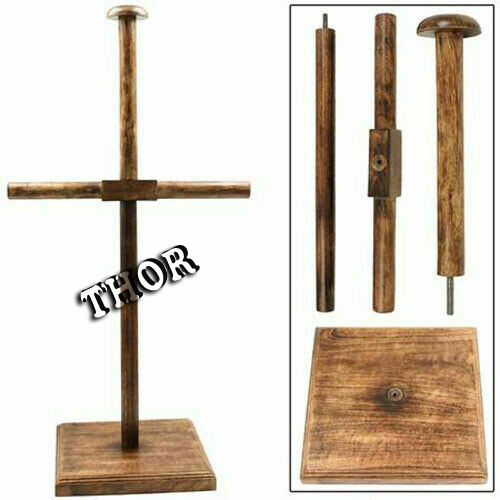 ที่ตั้งโชว์ทำจากไม้สีธรรมชาติสำหรับสไตล์ยุคกลางหมวกกันน็อคและแจ็กเก็ตที่ทำจากหนัง