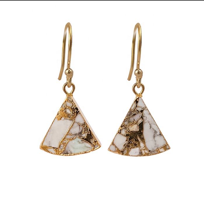 Natural Copper Mohave Turquoise Gemstone Earring Gold Electroplated Hook Earring Jewelry Dangle Drop Earring Jewelry for Her