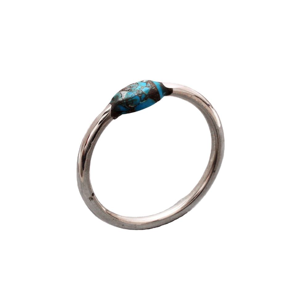 แหวนพลอยเทอร์ควอยซ์ธรรมชาติ925เงินสเตอร์ลิงทันสมัยแบบมินิมอลผู้จำหน่ายเครื่องประดับ