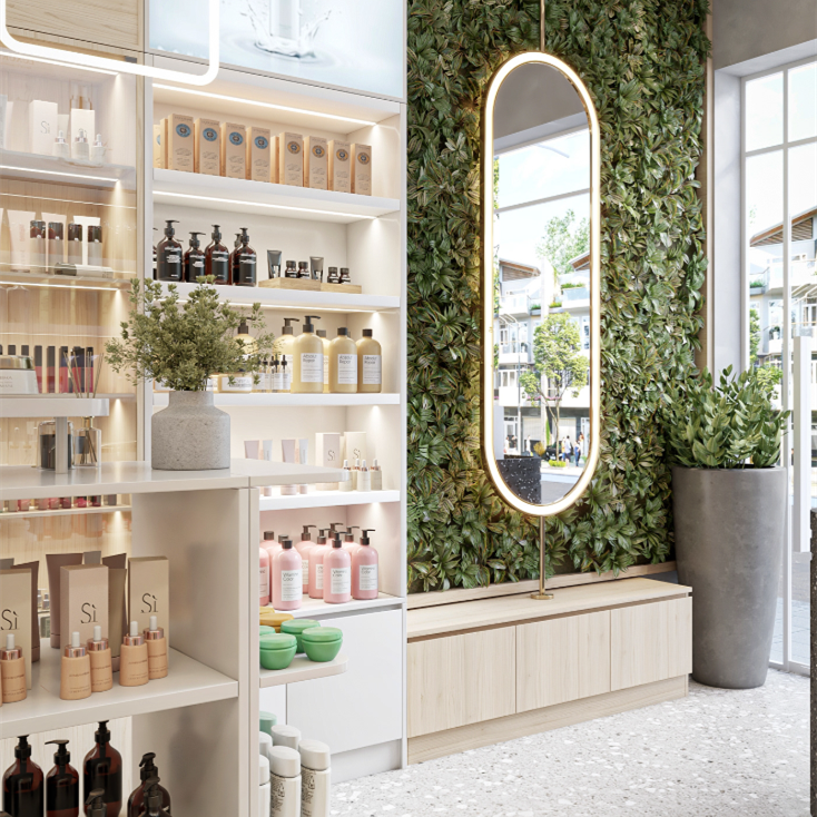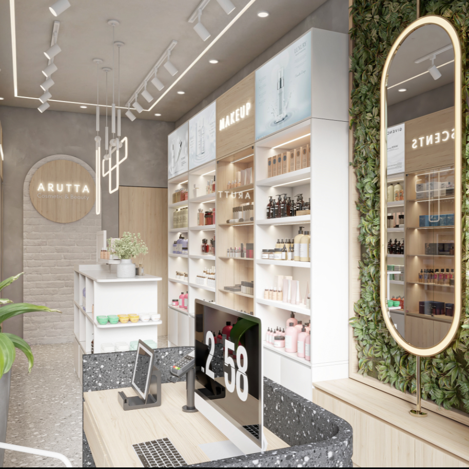ชั้นวางแสดงเครื่องสำอางตามสั่งหัวเรื่อง