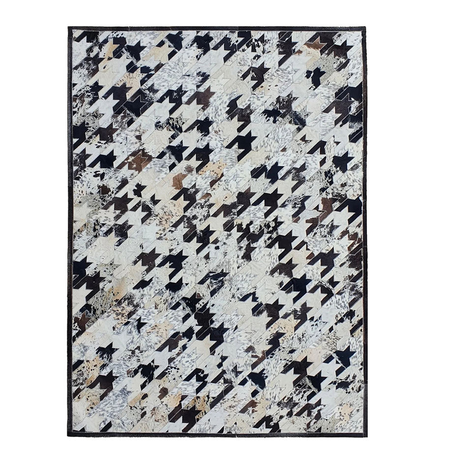 พรมหนัง Cowhide ธรรมชาติเย็บปะติดปะต่อกันดีไซน์ทันสมัยพรมหนัง Cowhide ทําด้วยมือสําหรับบ้านและสํานักงาน