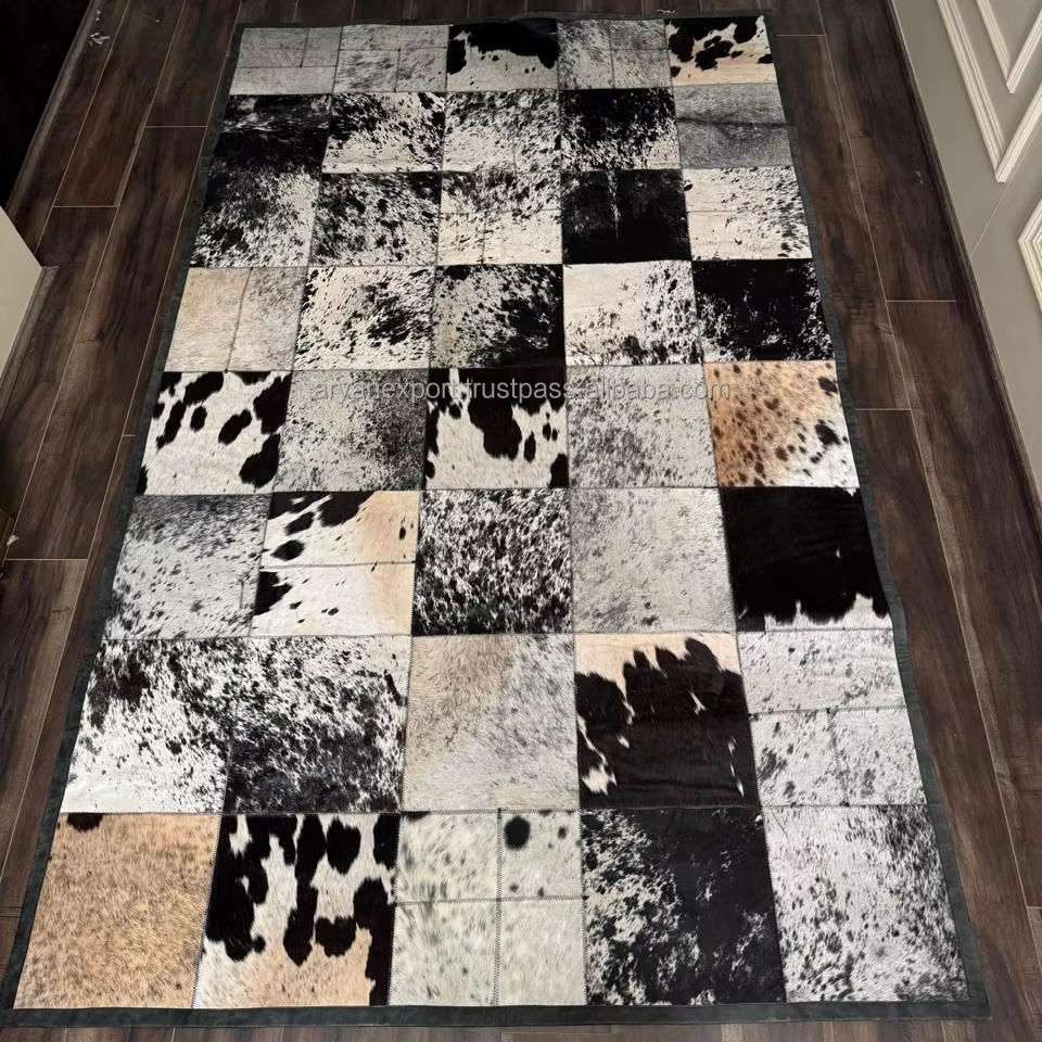 พรมหนังวัวเย็บปะติดปะต่อกันทำด้วยมือผมบนพรมหนังแท้พรมปูพื้นที่ทันสมัยแบบชนบทสำหรับตกแต่งห้องนั่งเล่นในบ้านขนาด9X6ฟุต