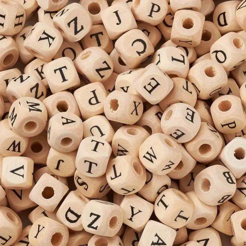 งานฝีมือลูกปัดไม้ธรรมชาติลูกปัด A-Z อักษรสี่เหลี่ยมสำหรับทำเครื่องประดับ DIY อุปกรณ์เสริมจำนวนมากสำหรับกำไลข้อมือรูปหัวใจหลวม