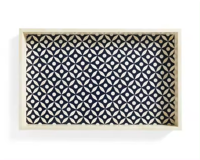 ถาดเสิร์ฟลายดอกไม้แฟนซีทันสมัย ดีไซน์สวยจาก Natural Craft ตกแต่งด้วยกระดูกสีสันสวยงาม ทนทาน สามารถปรับแต่งสีได้