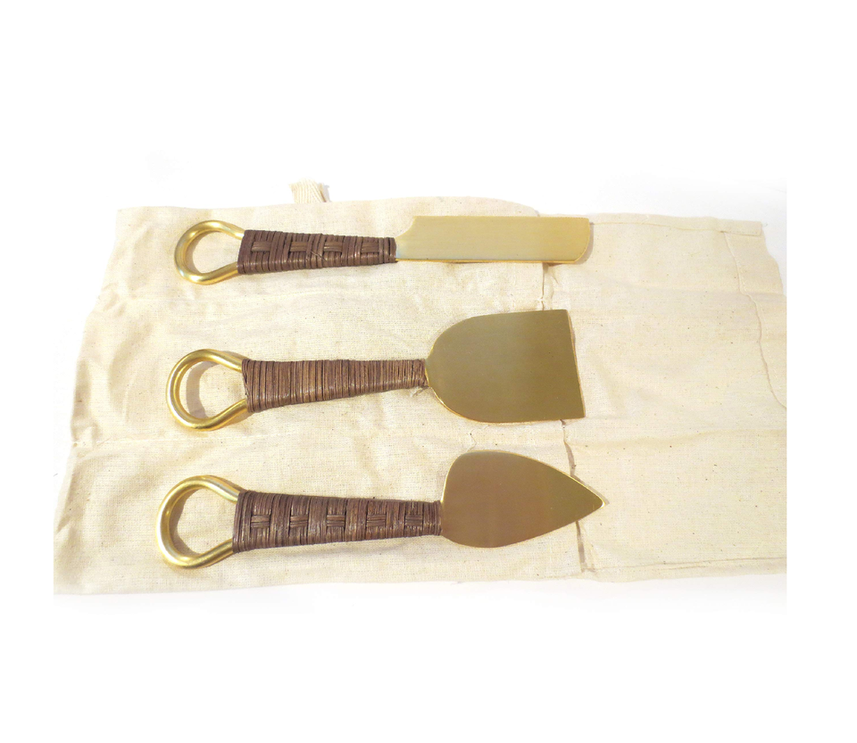 ชุดมีดหั่นชีสทำจากหวายทำด้วยมือชุดมีดหั่นชีสงานทำจากทองเหลืองทำมือ