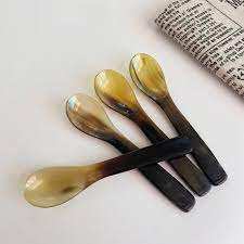 ช้อนเขาควายทำมือจากวัสดุธรรมชาติ เป็นมิตรกับสิ่งแวดล้อม ด้ามโค้งมน ขัดเงา