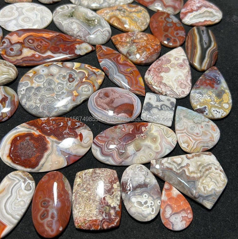 พลอยอาเกตทรงหลังเบี้ยลูกไม้บ้าธรรมชาติอัญมณีหลวมรูปร่างผสมและขนาดสำหรับการทำเครื่องประดับที่สร้างสรรค์การทำอัญมณี arhan 100กรัม MOQ
