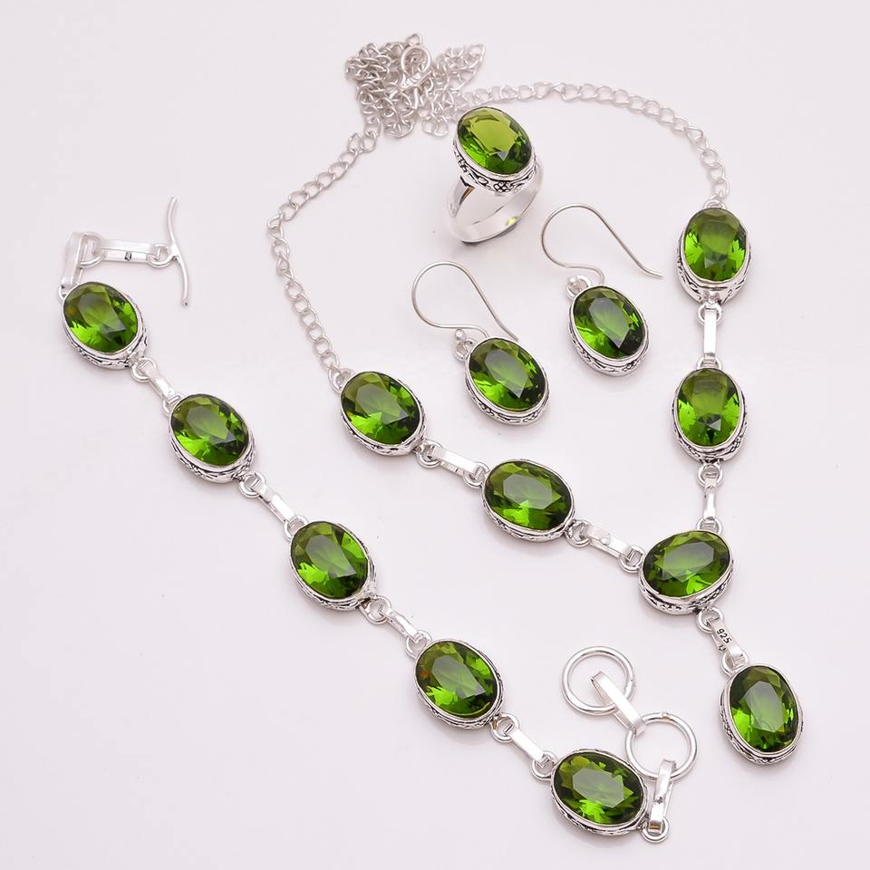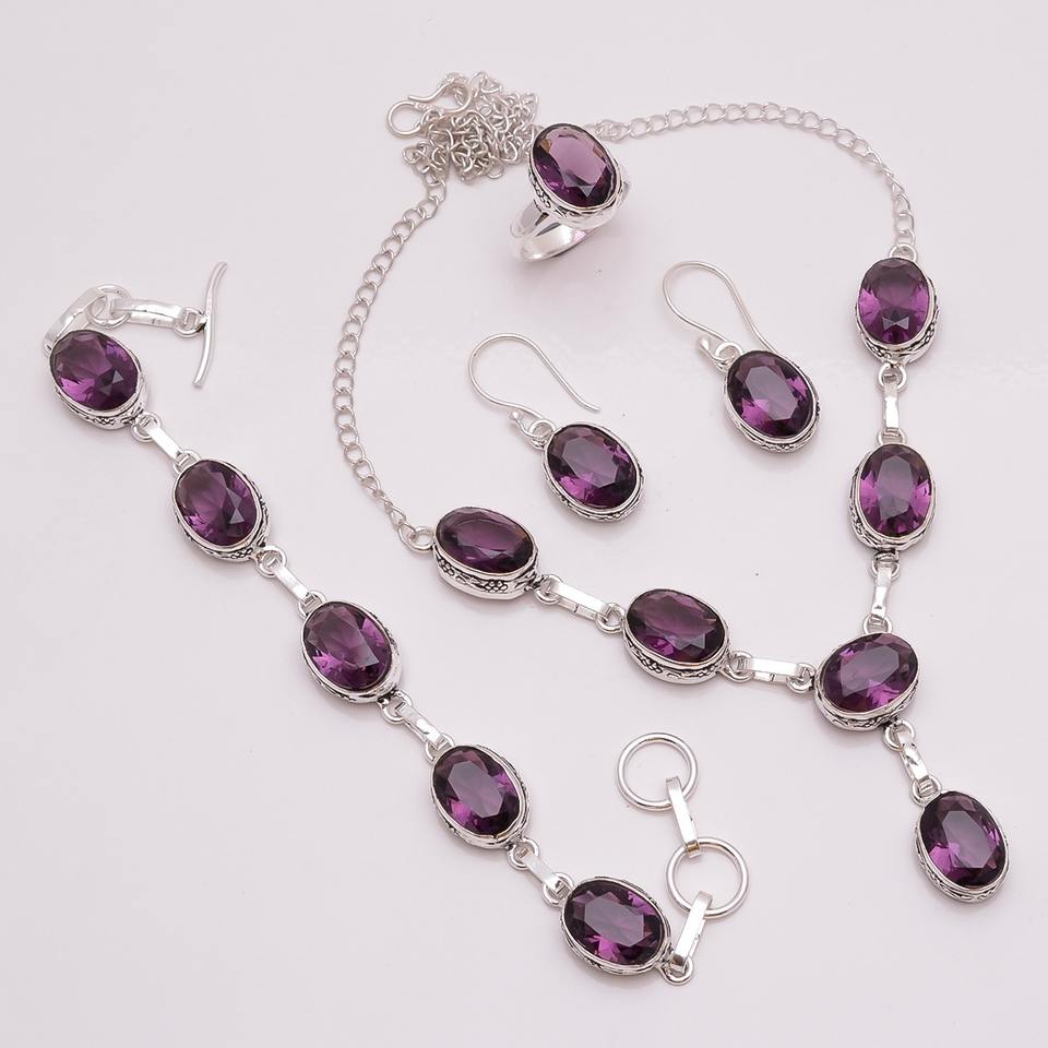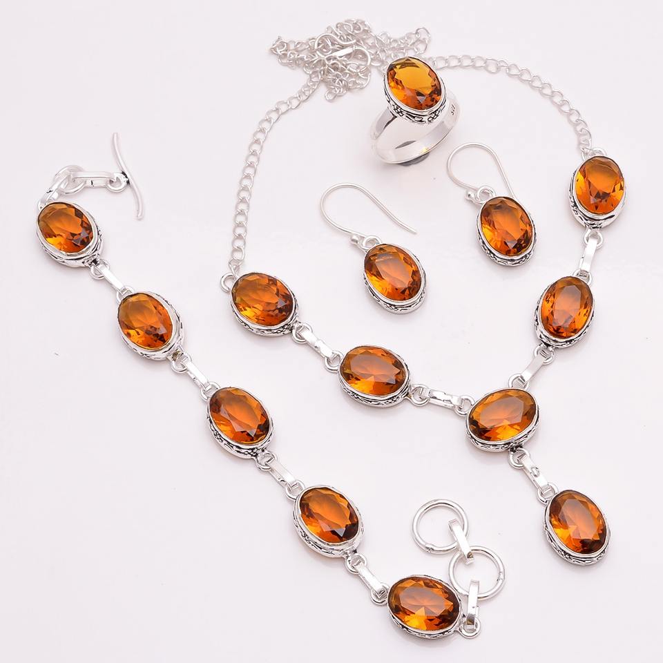 คริสตัลธรรมชาติควอตซ์อัญมณีชุดเครื่องประดับต่างหูสร้อยคอสร้อยข้อมือชุดเงินแท้ 925 ขายส่งเครื่องประดับที่กําหนดเอง
