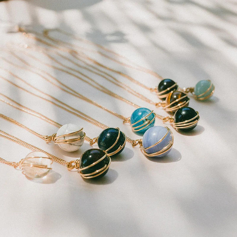 คริสตัลธรรมชาติอาเกตสีแดงสร้อยคอสแตนเลสลูกปัดอะความารีนเครื่องประดับห้อยสาย