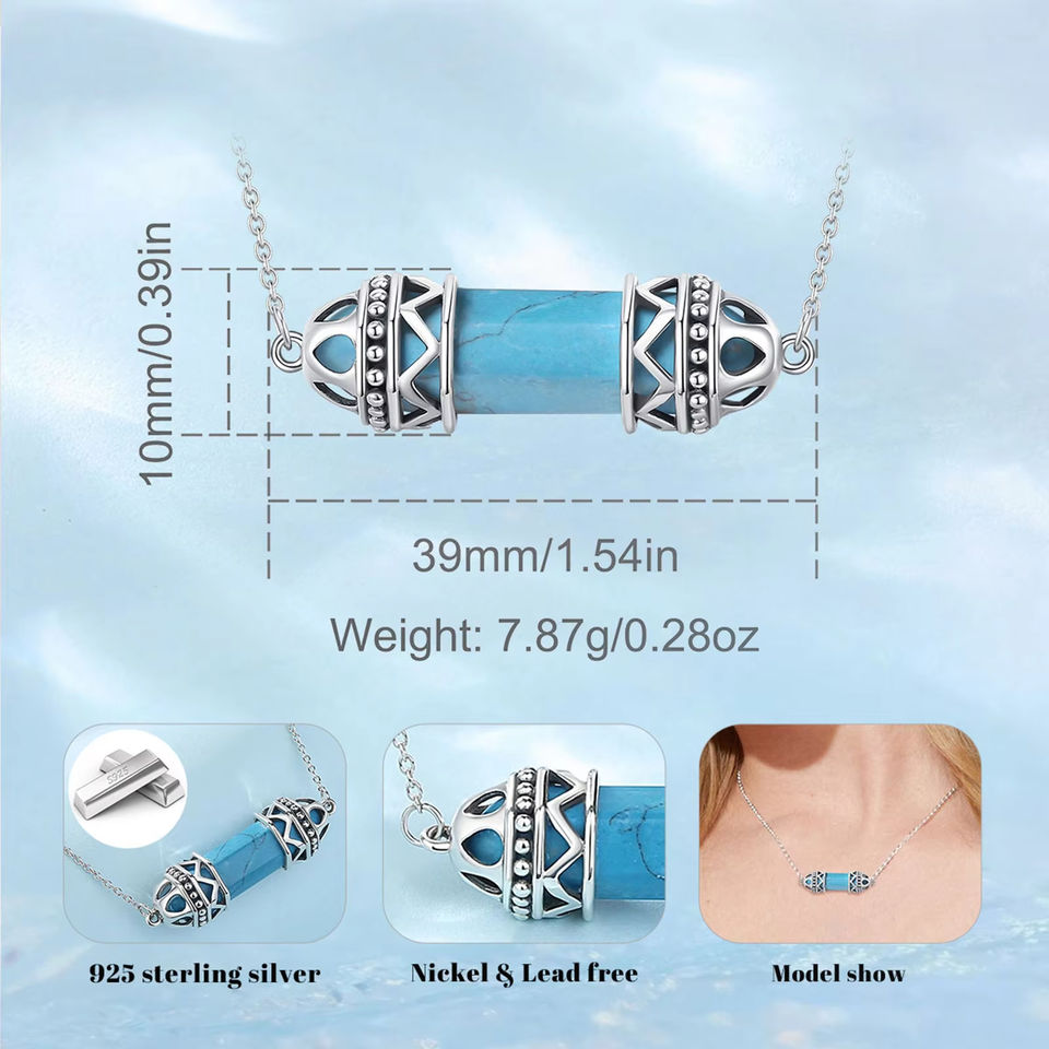 สร้อยคออัญมณีหินคริสตัลธรรมชาติพลังงานทางจิตวิญญาณจี้หินหกเหลี่ยมจี้เรกิมาลาฮีทสีน้ำเงิน