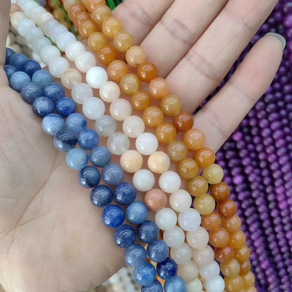 ลูกปัดคริสตัลธรรมชาติแบบหลวม4/6/8/10/12มม. ลูกปัดอัญมณีทรงกลมหลากสีทำเครื่องประดับด้วยตัวเอง