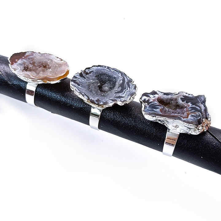 คริสตัลธรรมชาติหินธรรมชาติปรับได้ดิบดรูซี่อาเกตแหวนคริสตัลหินธรรมชาติ