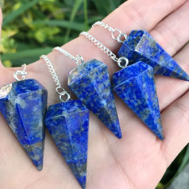 ผลึกธรรมชาติ Lapis Lazuli เหลี่ยมเพชรพลอยลูกตุ้มรูปกรวยสำหรับการรักษา Dowsing