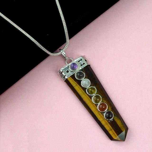 คริสตัลธรรมชาติตาเสือแบนจักระจี้ขายส่งจี้พลอยจี้เสน่ห์จี้สำหรับสร้อยคอ; ผู้ค้าส่ง