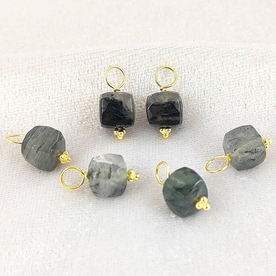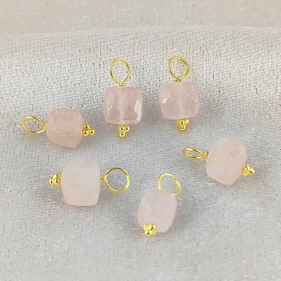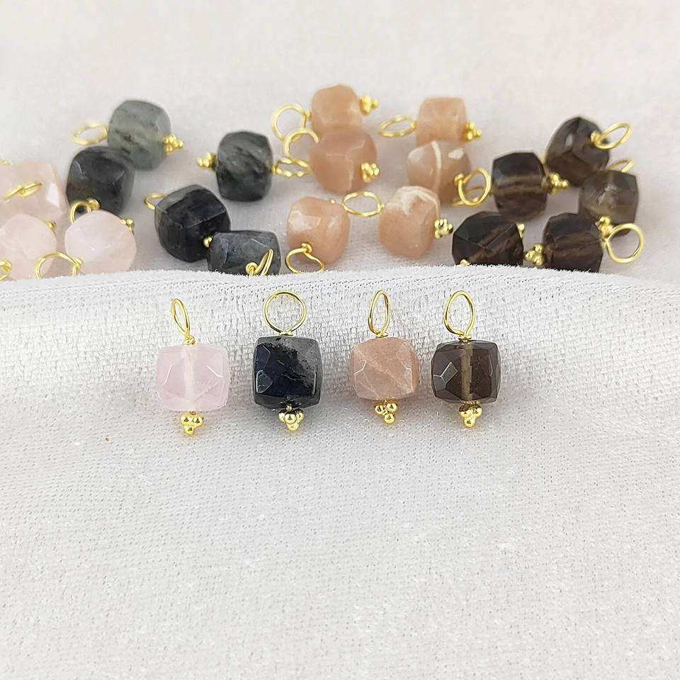 จี้รูปทรงลูกบาศก์จากอัญมณีธรรมชาติขนาดเล็ก ตัวเรือนเงินแท้ ชุบทองคำเวอร์เมล ผ่านการรับรองจากผู้ตรวจสอบอิสระ พร้อมลวดเงินสำหรับทำจี้