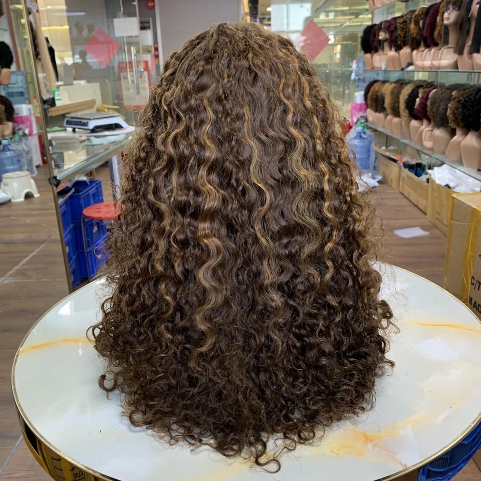 วิกผมมนุษย์แบบลอนธรรมชาติ ความหนาแน่นสูง SDD 18 นิ้ว ลอนหรูหรา วิกผมหน้าผาก 13x4