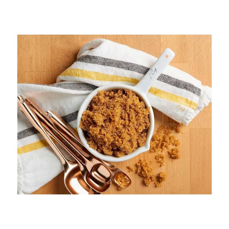 น้ำตาลธรรมชาติสีน้ำตาลเข้มในถุงจำนวนมากสำหรับการผลิตขนมอบและเครื่องดื่ม