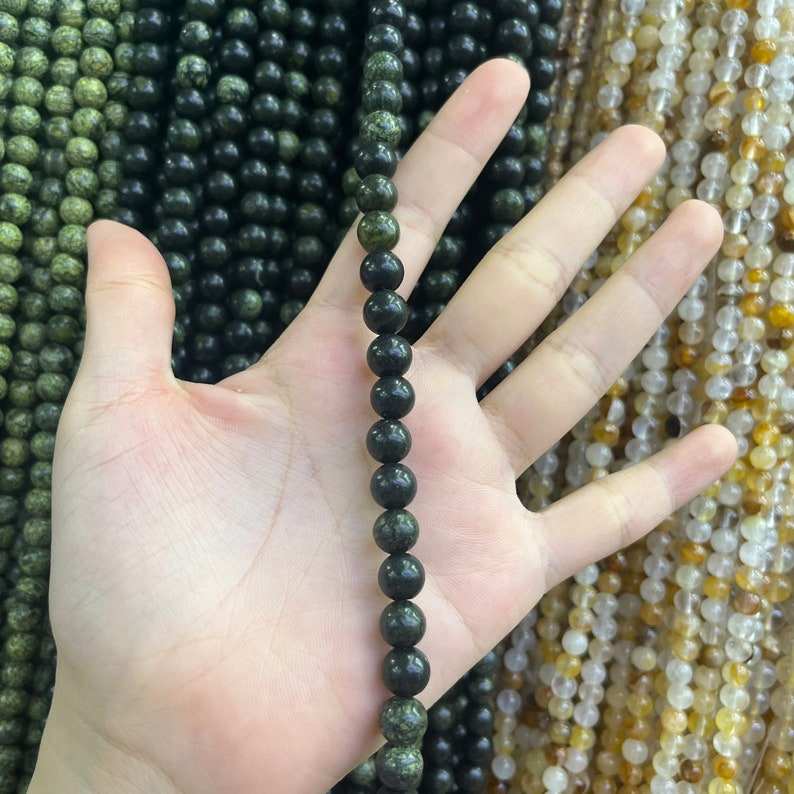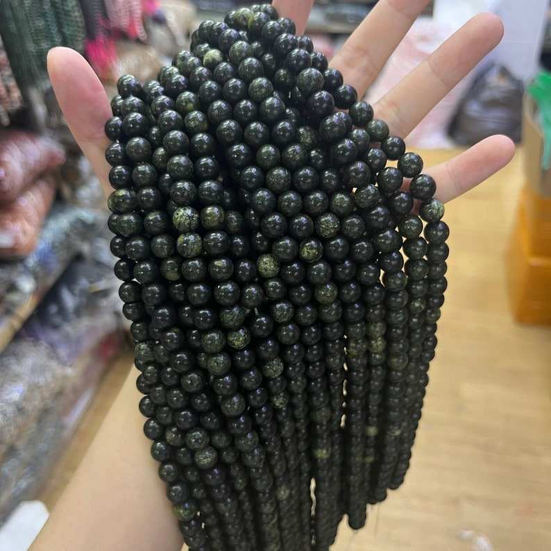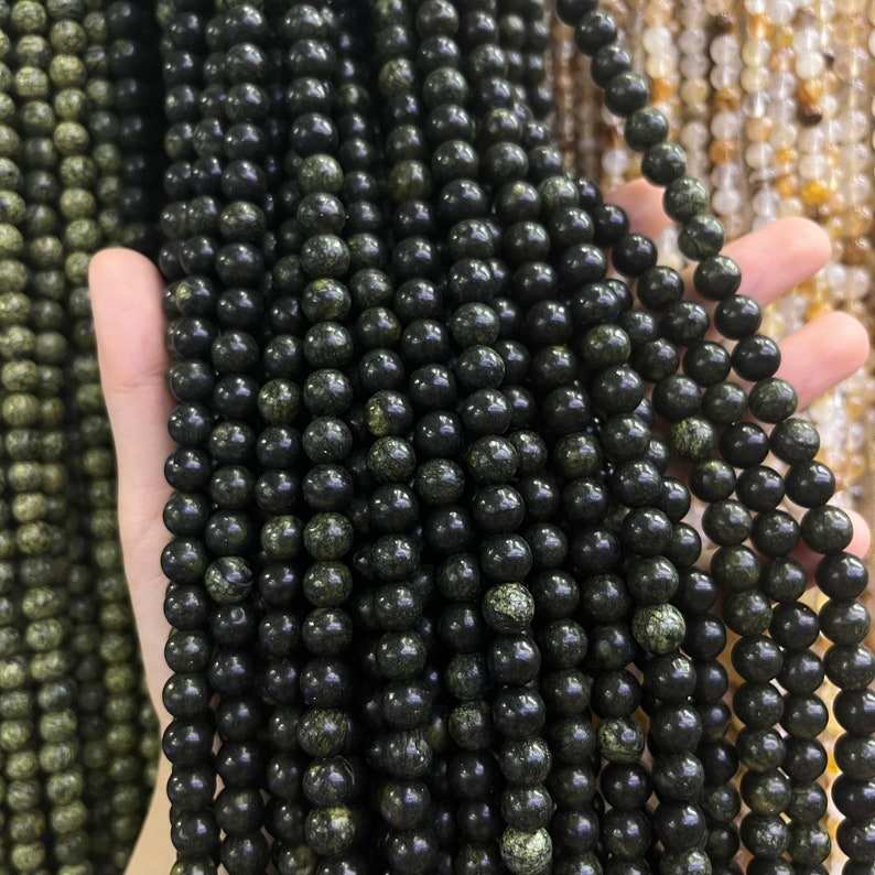 ลูกปัดหินแจสเปอร์สีเขียวเข้มธรรมชาติทรงกลม พลังบำบัด สำหรับทำสร้อยข้อมือ สร้อยคอ เครื่องประดับ DIY จำนวนมาก