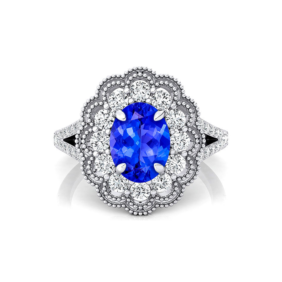 แหวนพลอย tanzanite พลอยพลอย18K ประดับเพชรสีขาวแท้ตัดเป็นพวงไร้ที่ติตามธรรมชาติ