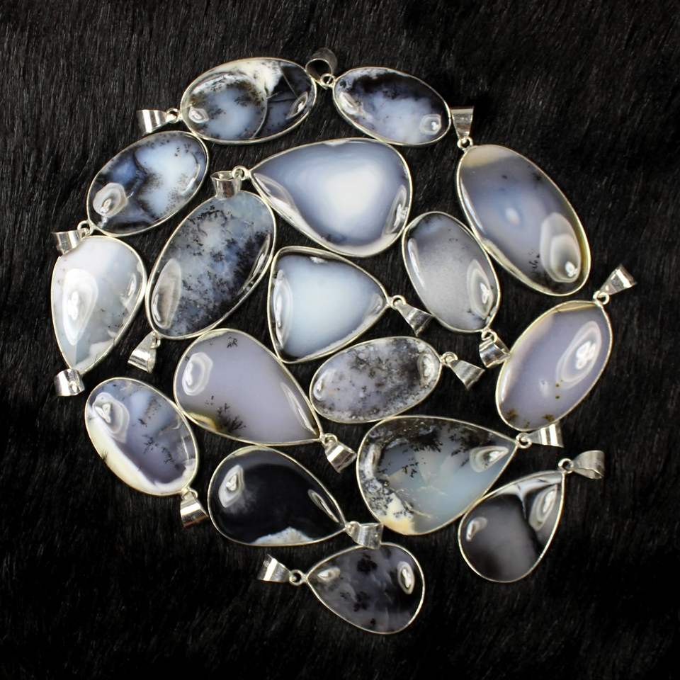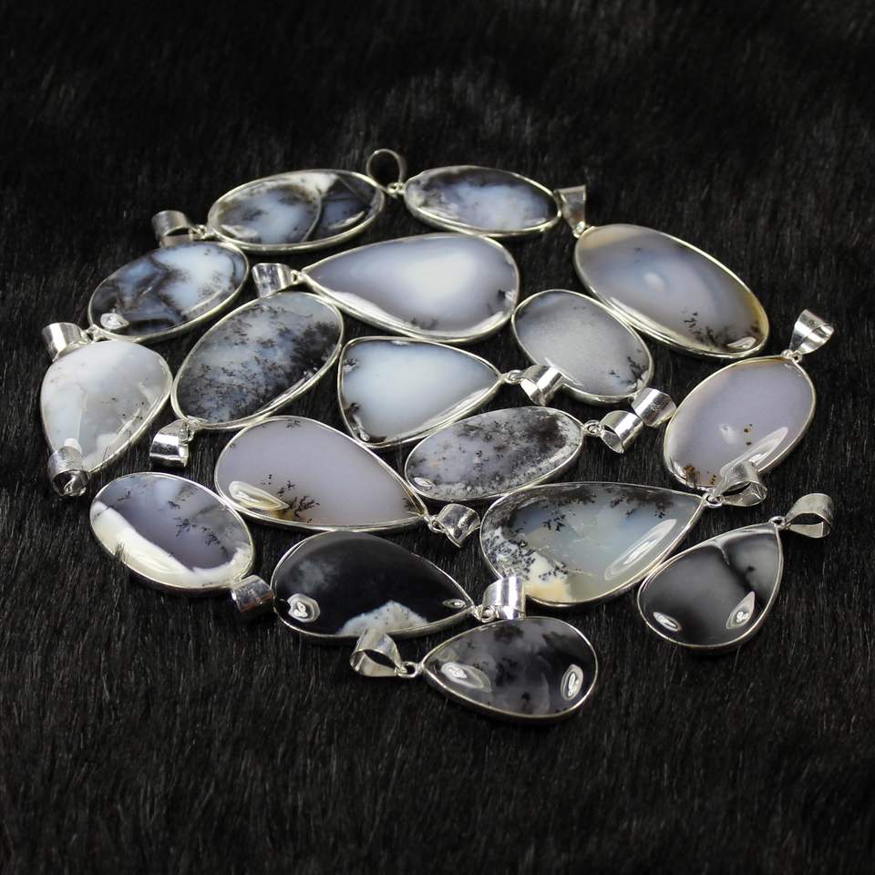จี้โอปอลเดนไดรต์ธรรมชาติ ชุบเงิน สไตล์โบฮีเมียน ประดับพลอย สร้อยคอสำหรับผู้หญิงและผู้ชาย ขายส่ง