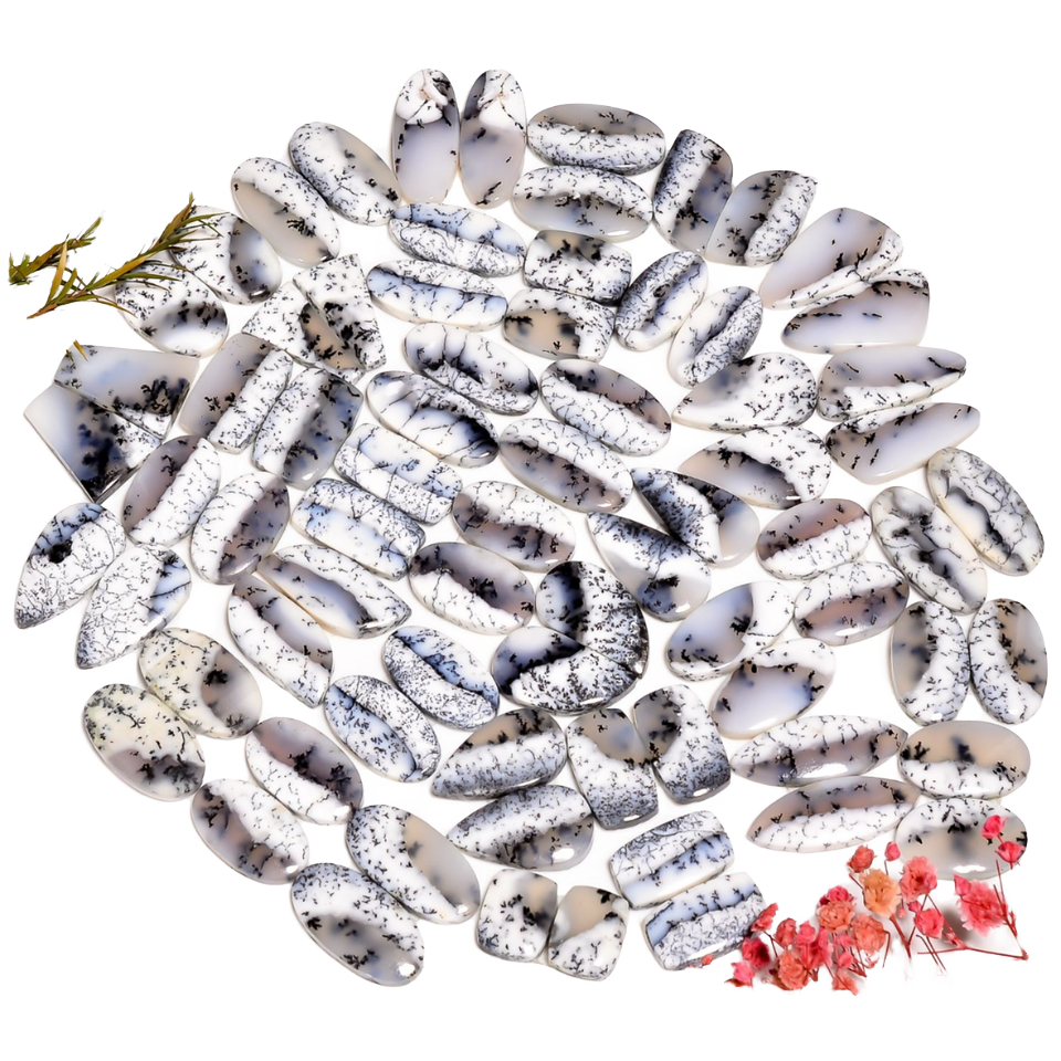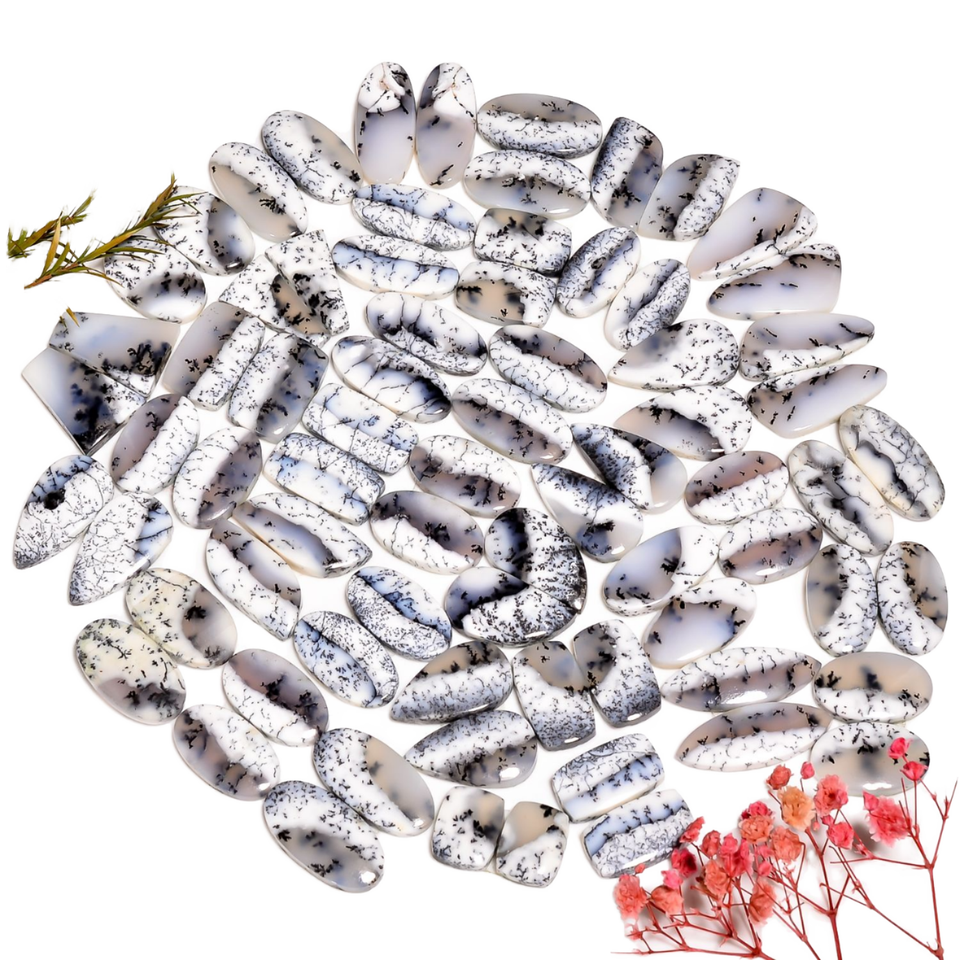 หินโมราธรรมชาติ Dendrite ทรงรีสำหรับขัดเงาเครื่องประดับเงินลูกปัดขนาดเล็กแบบหลวม