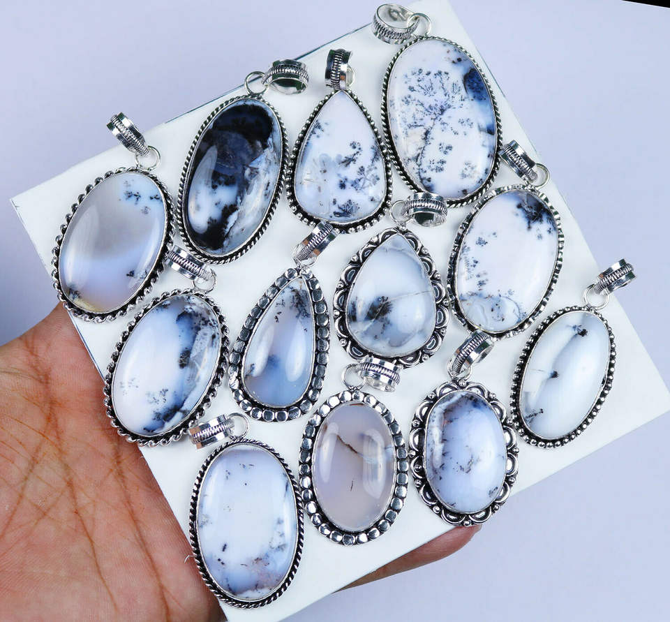 ธรรมชาติ Dendrite Agate,ขายส่งอัญมณีจำนวนมาก,จี้เงินชุบ