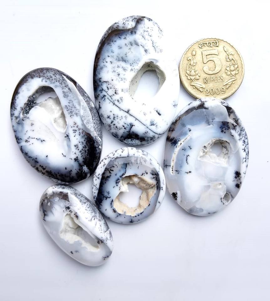 โอปอลเดนไดรต์ธรรมชาติทรงหลังแบน เจียระไนแบบคาโบชอง หินควอตซ์เรียบสำหรับบำบัด ราคาขายส่ง