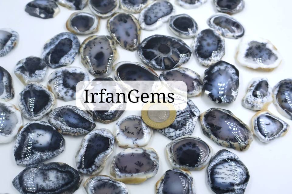 Dendrite CAB หินโอปอลขัดผิวเรียบไม่ซ้ำใคร Dendrite CAB สายห่ออัญมณี