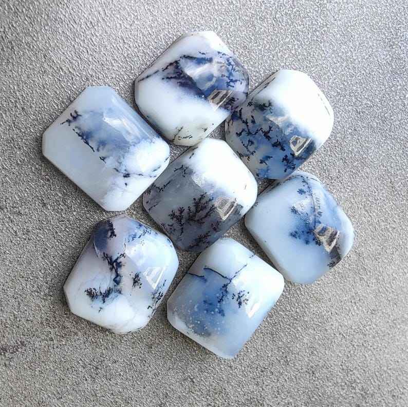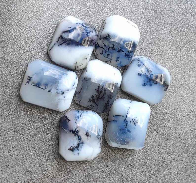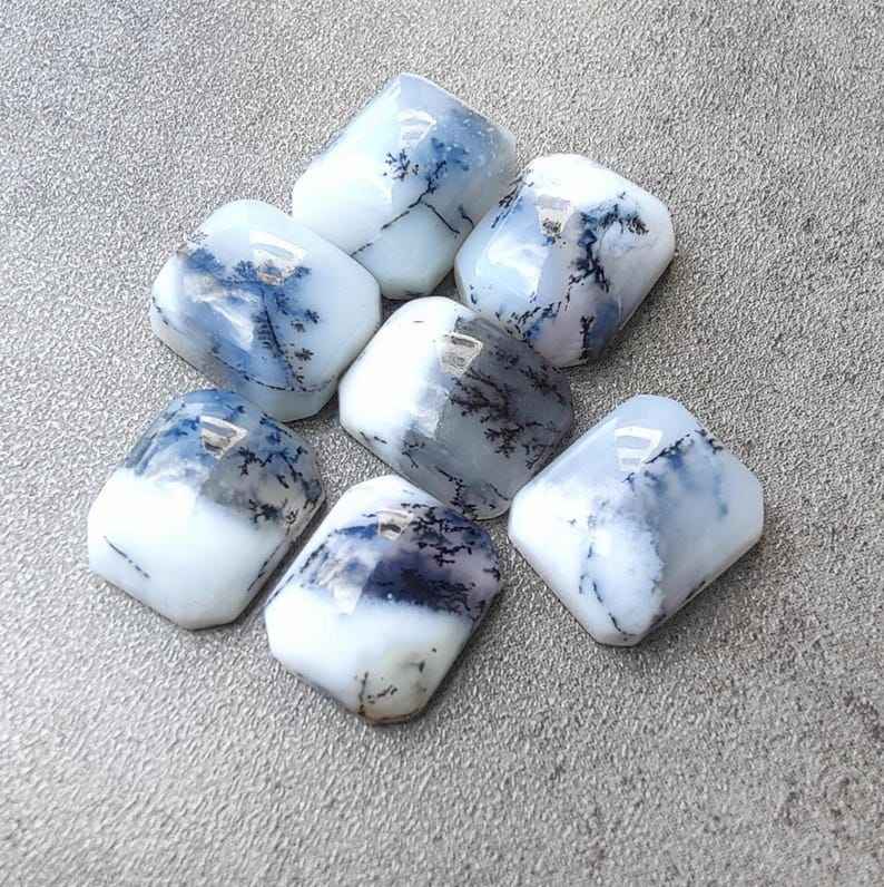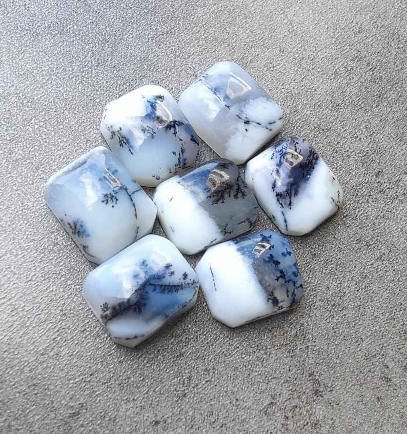 พลอยอะเกตเดนไดรติกธรรมชาติทรงแปดเหลี่ยมคุณภาพคาโบชองสำหรับทำเครื่องประดับ