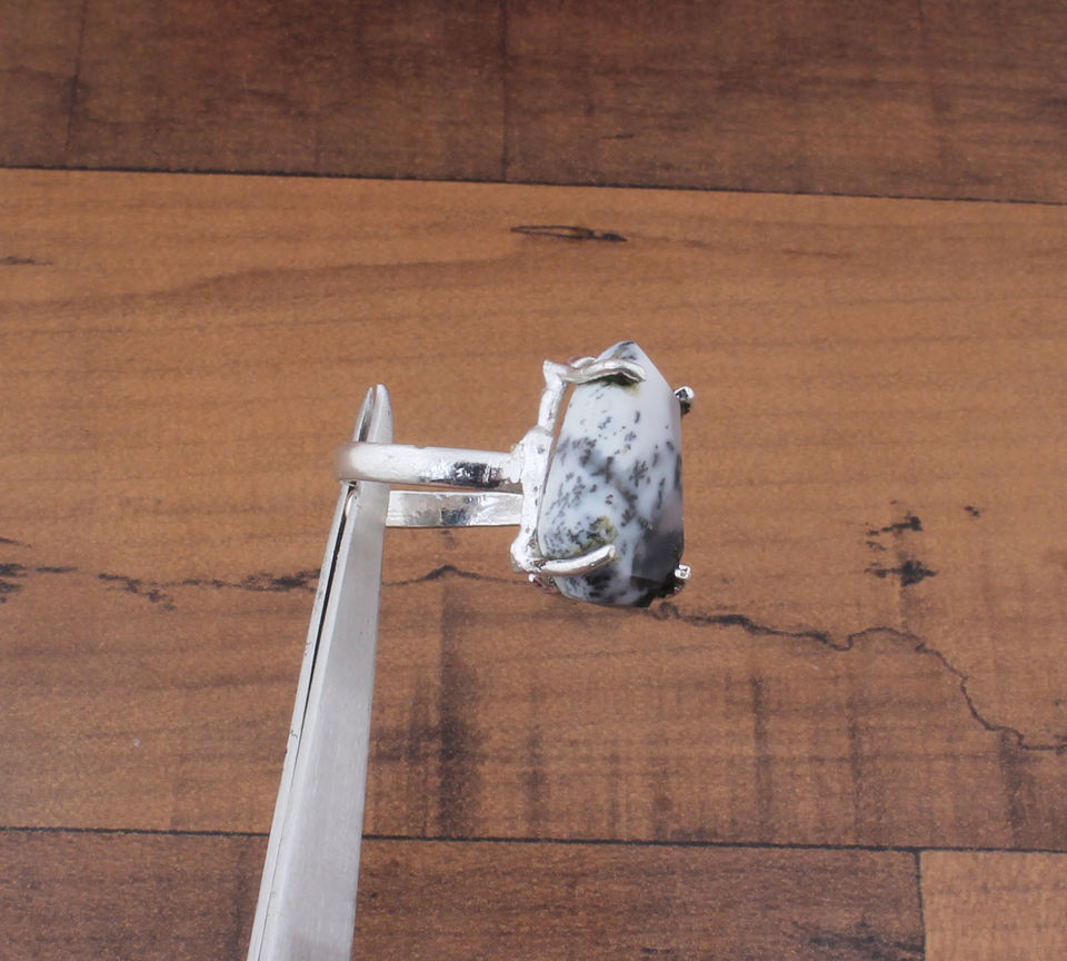 แหวนเงินแท้ 925 ประดับโอปอลธรรมชาติทรงเดนดริทิก ดีไซน์ภูมิทัศน์ สำหรับผู้หญิง ขายส่ง