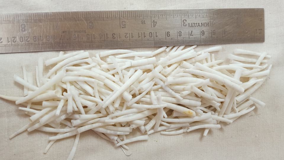 เปลือกหอย Dentalium Tusk ธรรมชาติมีขนาดตั้งแต่1ถึง2นิ้วเหมาะสำหรับนักออกแบบเครื่องประดับพื้นเมือง