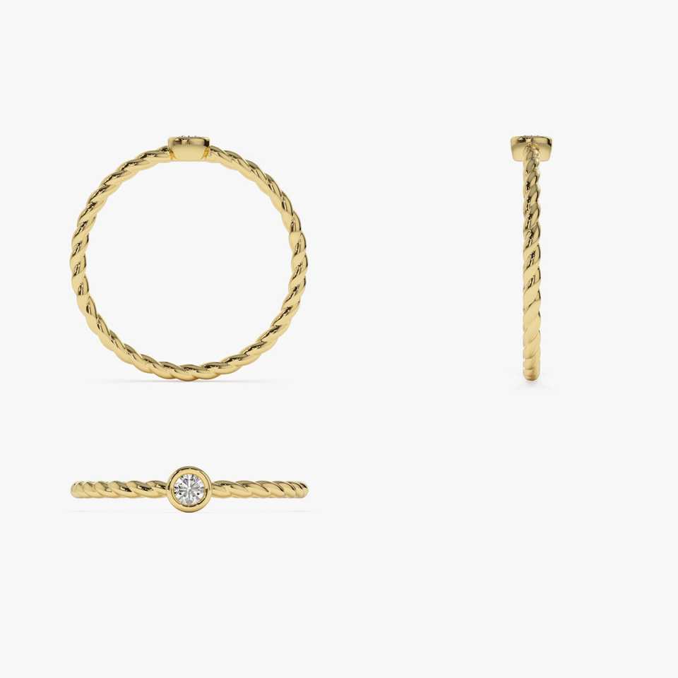 แหวนหมั้นบิดฝาเพชรธรรมชาติ14K สีเหลืองทองเครื่องประดับ ODM แหวนทองแชมเปญทรงกลมตัดสดใส VS เพชร