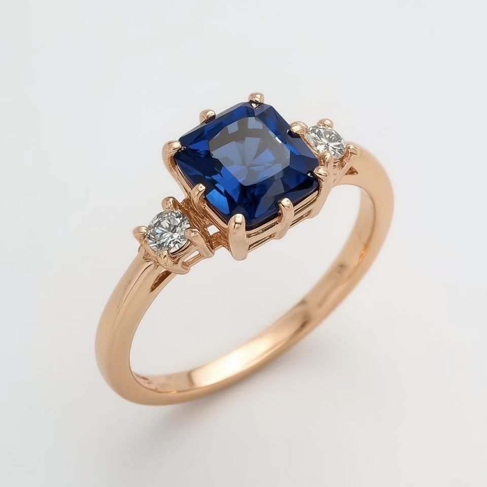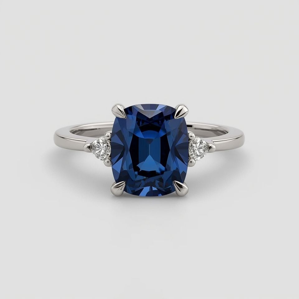 แหวนหมั้นเพชรบลูแซฟไฟร์ทรงบาแกตต์สุดหรู ทองคำแท้ 10K สำหรับแหวนแต่งงานและงานเลี้ยงที่ได้รับการรับรอง ผลิตในประเทศไทย
