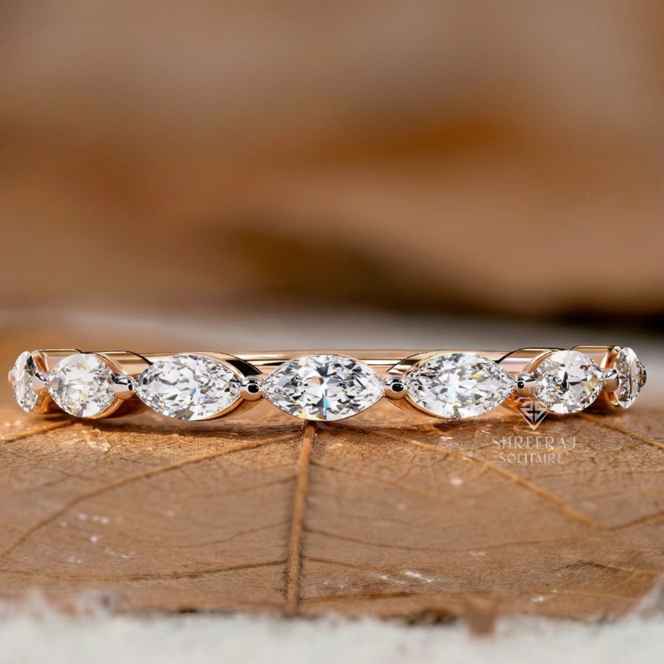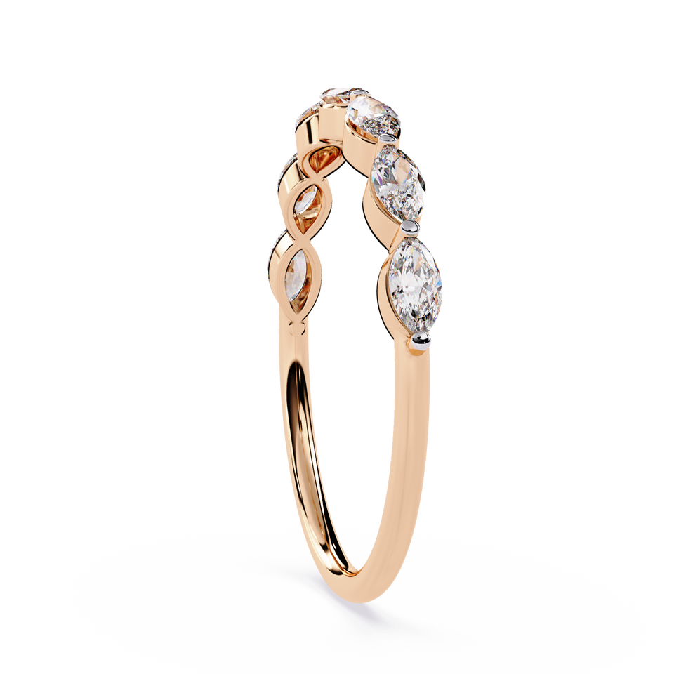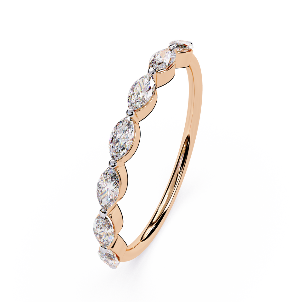 แหวนเพชรธรรมชาติแบบมินิมอล รับรองโดย IGI ทรงมาร์คีส์ ทองคำ 14K 18K สีโรสโกลด์ แหวนเพชรหรูหราสำหรับผู้หญิง