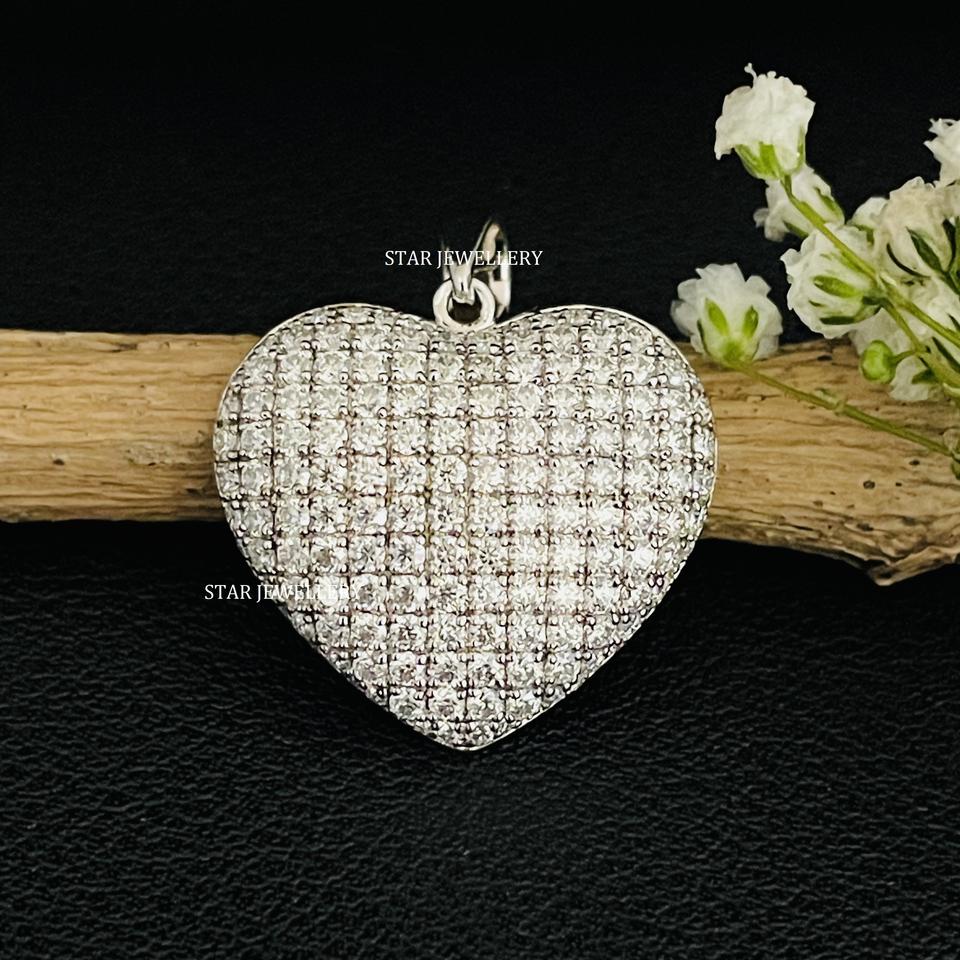 จี้เพชรแท้ทรงหัวใจแบบพอง ประดับเพชรแบบฝัง 14K ทองคำ สำหรับทุกเพศ เหมาะสำหรับงานปาร์ตี้