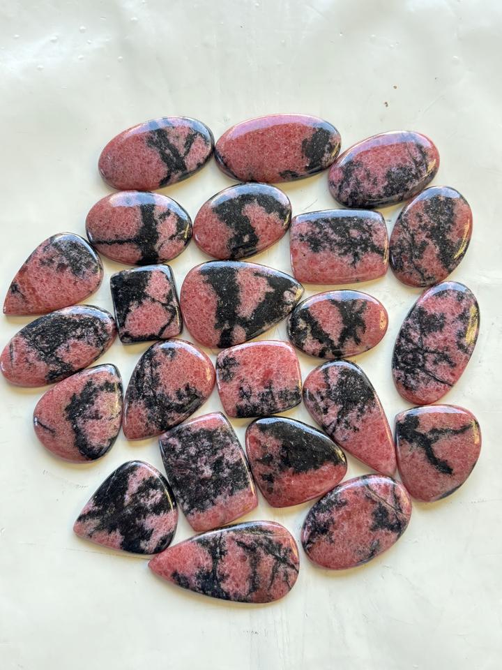 ชื่อผลิตภัณฑ์:เพชรธรรมชาติ Rhodonite Cabochon อัญมณีคริสตัลสีชมพูหลวม