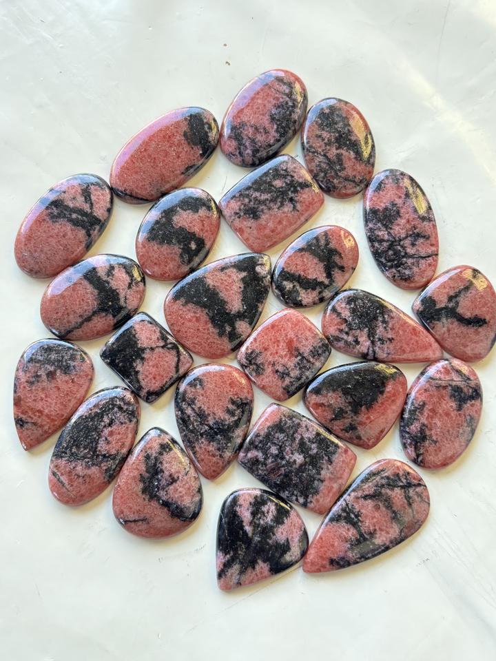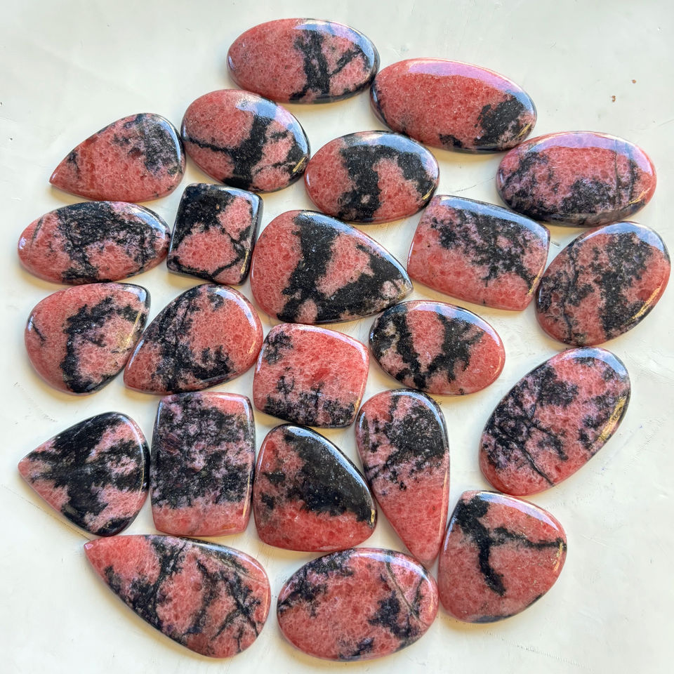 เพชรธรรมชาติ Rhodonite Cabochon หลวมอัญมณีคริสตัลสีชมพูผสมรูปทรงและขนาด Rhodonite ขัดสำหรับทำเครื่องประดับ