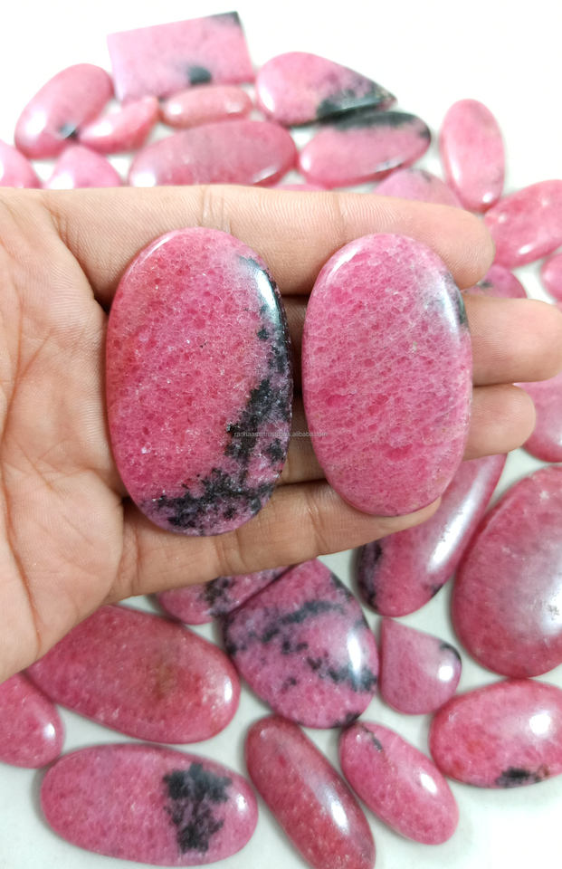 Natural Rhodonite Cabochon Loose Pink Crystal Gemstones Bead and Oval Shape Polished for Jewelry Making Mix Size Lot
