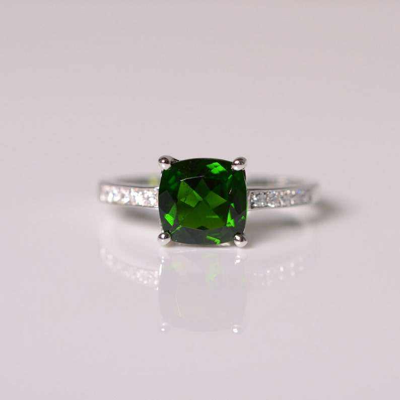 แหวน diopside ธรรมชาติแหวนพลอยสีเขียวมรกตของขวัญสำหรับผู้หญิงและเด็กผู้หญิงของขวัญครบรอบแหวนหมั้น