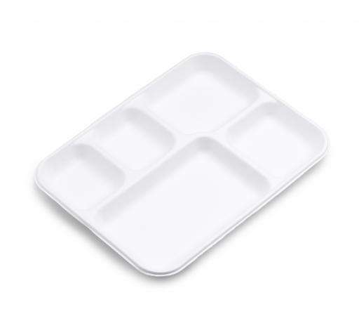 จานชานอ้อยแบบชุบ5ช่องถาดอาหารสำหรับเสิร์ฟแบบใช้แล้วทิ้งเป็นมิตรกับสิ่งแวดล้อม
