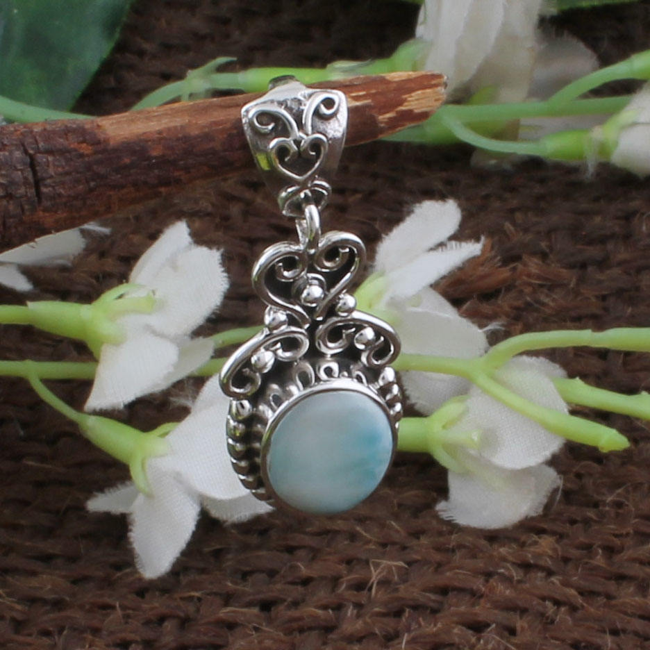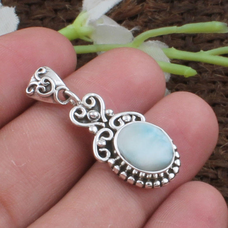จี้ลาริมาร์ธรรมชาติจากโดมินิกัน เงินแท้ 925 ชุบแพลตตินัม สร้อยคอทรงหยดน้ำสไตล์วินเทจ ประดับอัญมณีเกรด AAA คุณภาพดี